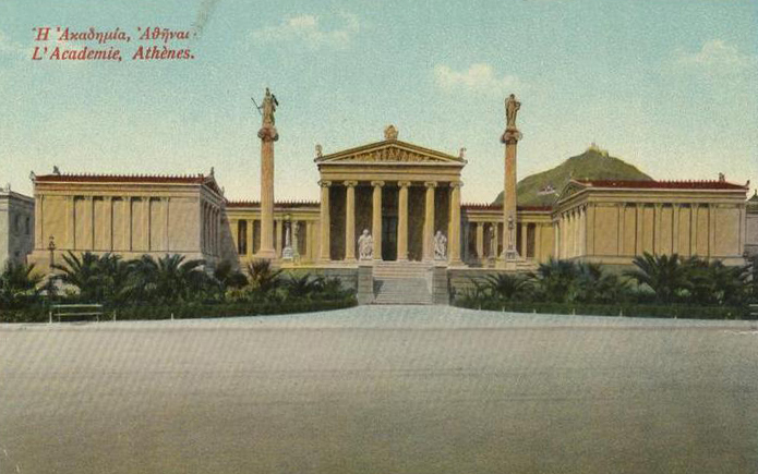 Ιδρύεται η Ακαδημία Αθηνών, με πρωτοβουλία του καθηγητή αστρονομίας Δημητρίου Αιγινήτη.