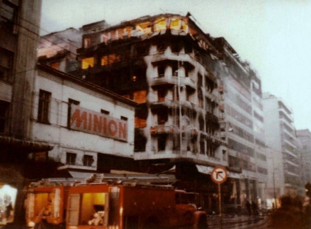 Πυρπολούνται τα πολυκαταστήματα Μινιόν και Κατράντζος. Το συμβάν αποδίδεται σε τρομοκρατική ενέργεια.