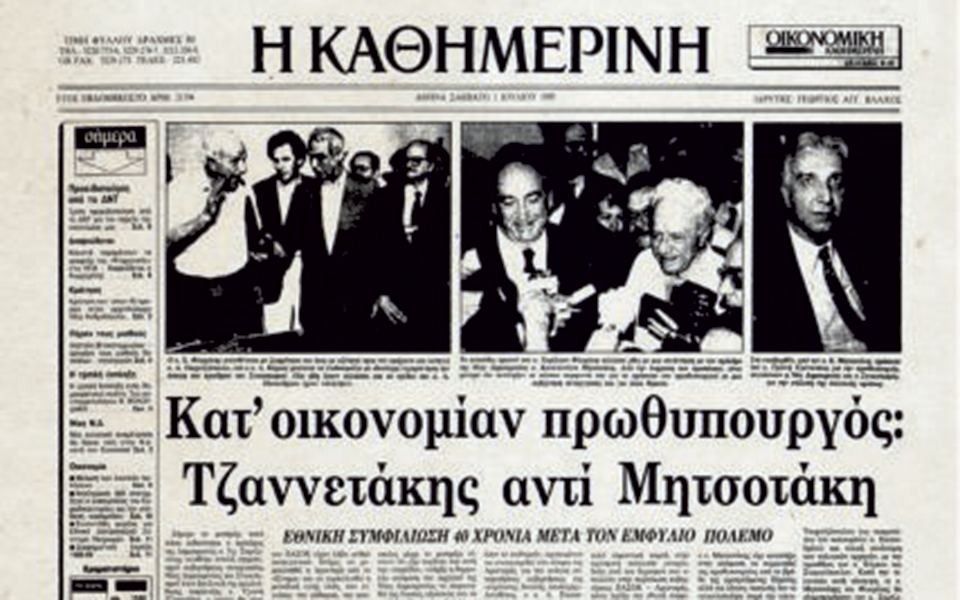 Ορκίζεται η κυβέρνηση συνεργασίας Νέας Δημοκρατίας - Συνασπισμού υπό τον Τζαννή Τζαννετάκη, ο οποίος διατηρεί και το χαρτοφυλάκιο του Υπουργείου Εξωτερικών. Θα παραμείνει στην εξουσία έως τις 12 Οκτωβρίου 1989.