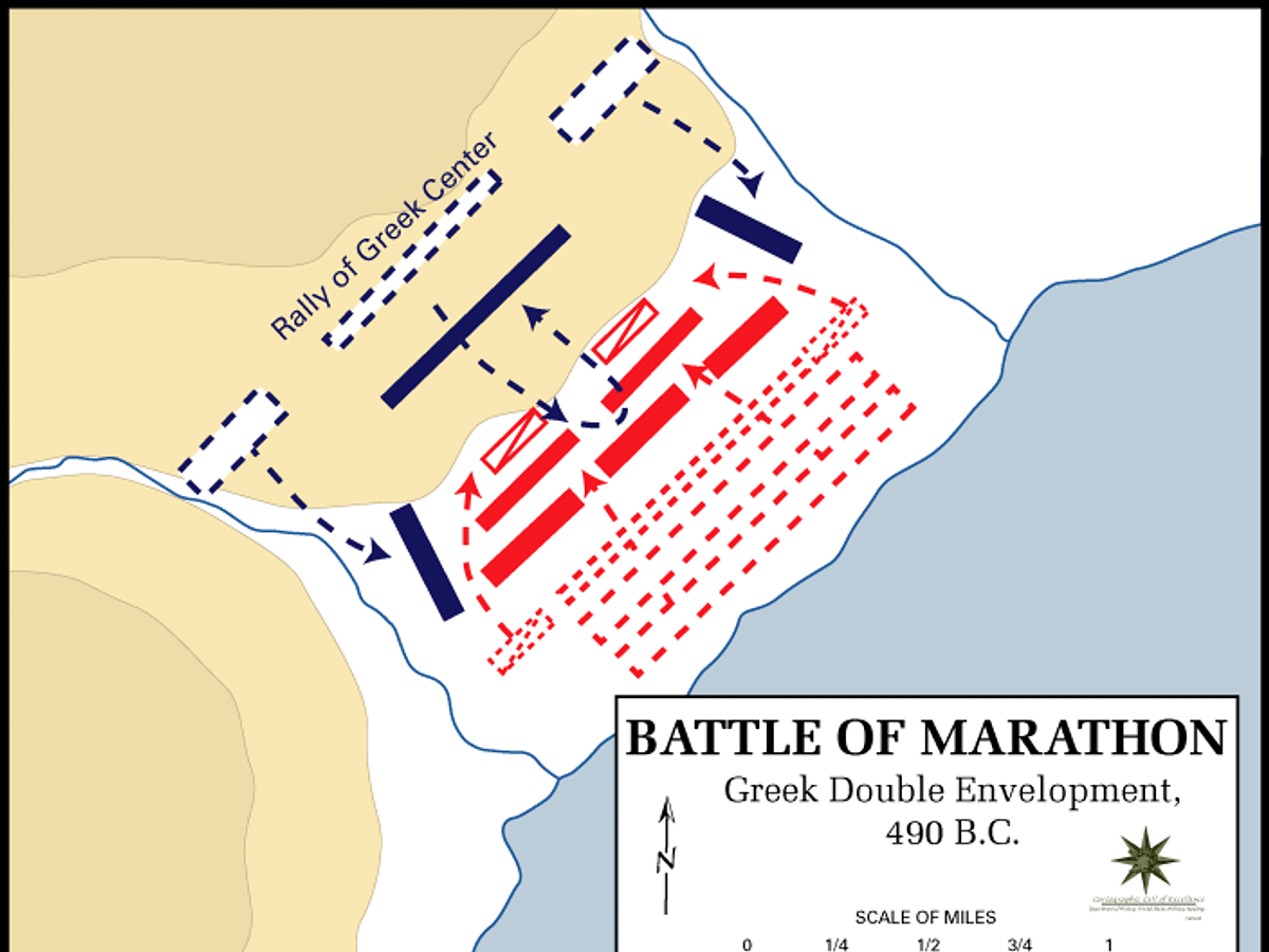 Έλληνες και Πέρσες συγκρούονται στο Μαραθώνα. Οι Πέρσες, υπό τον Δάτι και τον Αρταφέρνη, αφήνουν στο πεδίο της μάχης 6.500 νεκρούς, ενώ οι απώλειες από την ελληνική πλευρά είναι μόλις 192, ανάμεσά τους και ο Καλλίμαχος. Η ακριβής ημερομηνία αμφισβητείται από πολλούς ιστορικούς, οι οποίοι υπολογίζουν ότι η μάχη διεξήχθη στις 13 ή 14 Αυγούστου (Ιστορία του Ελληνικού Έθνους, Εκδοτική Αθηνών).