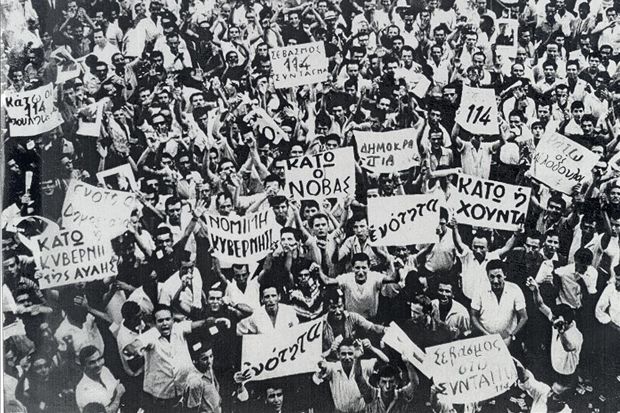Μεγάλη αντικυβερνητική διαδήλωση πραγματοποιείται στο κέντρο της Αθήνας, ως αντίδραση στην κυβέρνηση των λεγόμενων «Αποστατών», που είχε σχηματιστεί μετά την αποχώρηση βουλευτών από την Ένωση Κέντρου. Οι δυνάμεις ασφαλείας αντιμετωπίζουν το πλήθος με χρήση δακρυγόνων και γκλομπ. Κατά τη διάρκεια των επεισοδίων, στη συμβολή των οδών Σταδίου και Εδουάρδου Λω, σκοτώνεται ο 22χρονος φοιτητής Σωτήρης Πέτρουλας. Ο θάνατός του θα αποτελέσει σύμβολο του αγώνα για δημοκρατία και θα οξύνει περαιτέρω το ήδη τεταμένο πολιτικό κλίμα.