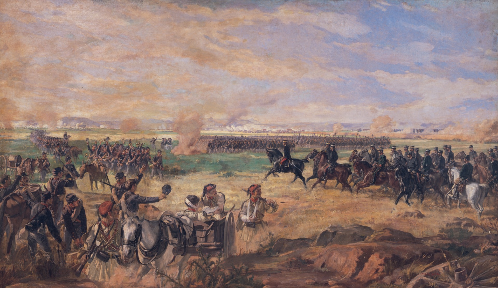Η Μάχη των Φαρσάλων. Οι ελληνικές δυνάμεις υπό τον Ταξίαρχο Σμολένσκη, παρά τις σφοδρές τουρκικές επιθέσεις, διατηρούν τις θέσεις τους. (Ο Ελληνοτουρκικός Πόλεμος του 1897)