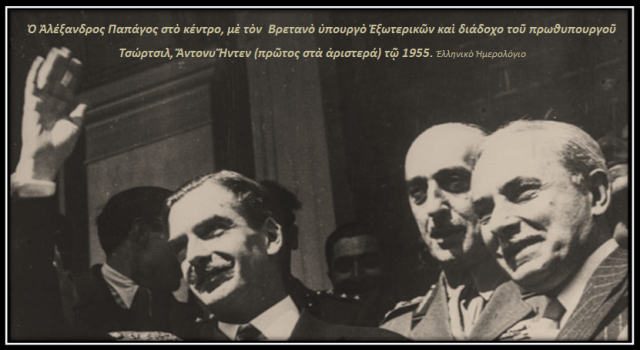 Ο πρωθυπουργός Αλέξανδρος Παπάγος συναντάται με τον βρετανό υπουργό Εξωτερικών, Άντονι Ίντεν, στη βρετανική πρεσβεία της Αθήνας για το Κυπριακό. Υπάρχει διάσταση απόψεων, ενώ αίσθηση προκαλεί η δήλωση του τελευταίου ότι για τη βρετανική κυβέρνηση «δεν υφίσταται Κυπριακό ζήτημα, ούτε εις το παρόν, ούτε εις το μέλλον».