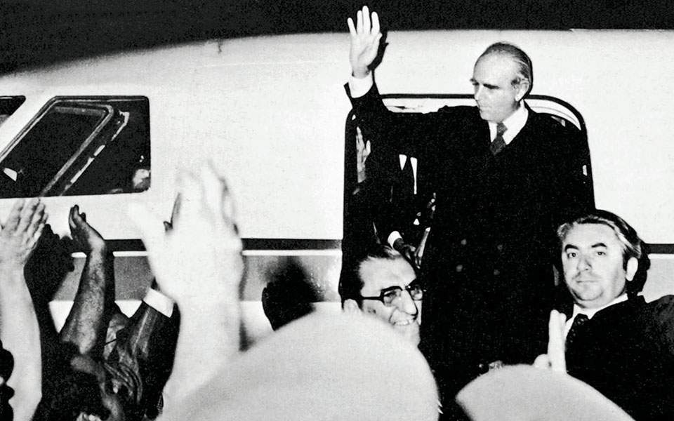 Χιλιάδες λαού υποδέχονται στο αεροδρόμιο του Ελληνικού στις 2 π.μ. τον Κωνσταντίνο Καραμανλή, που φτάνει από το Παρίσι, με αεροπλάνο του προέδρου της Γαλλίας Βαλερί Ζισκάρ Ντ' Εστέν. Στις 4:15 π.μ. ορκίζεται πρωθυπουργός, μπροστά στο στρατηγό Φαίδωνα Γκιζίκη.