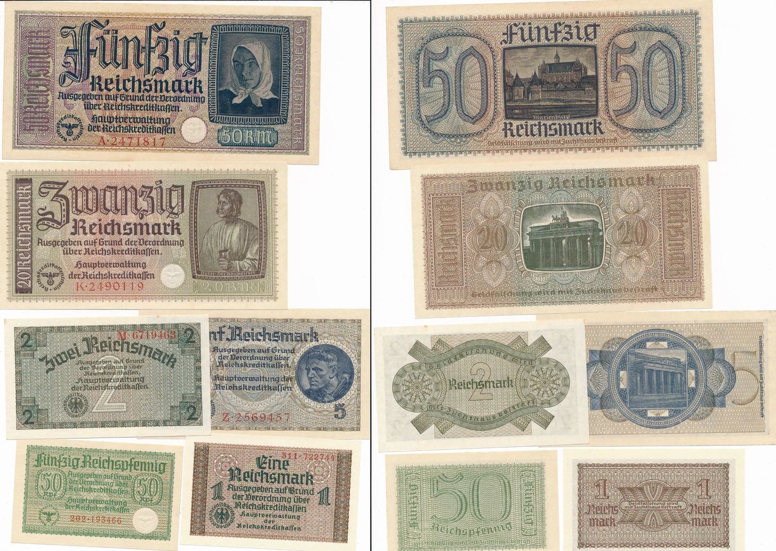Οι αρχές κατοχής στην Ελλάδα θέτουν σε κυκλοφορία παράλληλα με τη δραχμή, το μάρκο κατοχής (Reichs Kredit Kassenscheine), τη λιρέτα κατοχής, τη μεσογειακή δραχμή, το βουλγαρικό λέβα και το αλβανικό φράγκο, νομίσματα χωρίς αντίκρυσμα.