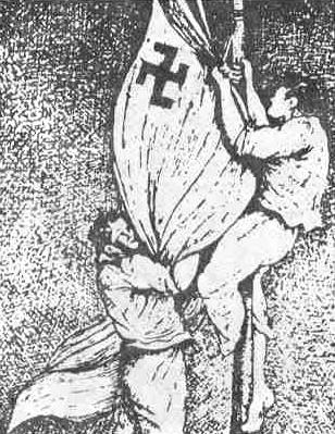 Δύο 19χρονοι φοιτητές, ο Μανώλης Γλέζος και ο Απόστολος Σάντας, με μία παράτολμη ενέργειά τους, κατεβάζουν από την Ακρόπολη τη γερμανική σημαία και αναρτούν την ελληνική.