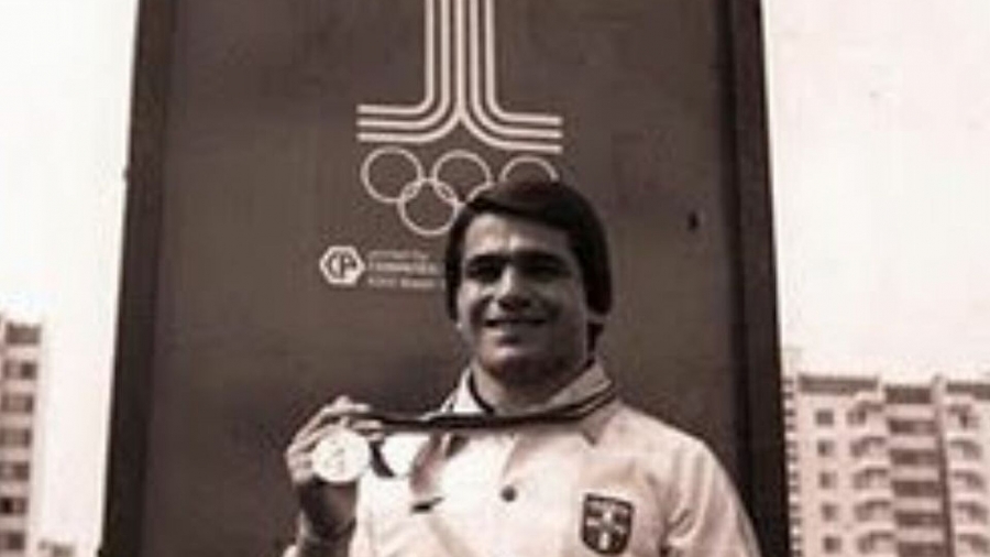 Ο Στέλιος Μυγιάκης κατακτά το χρυσό μετάλλιο στην κατηγορία των 62 κιλών της ελληνορωμαϊκής πάλης κατά τη διάρκεια των Ολυμπιακών Αγώνων της Μόσχας.