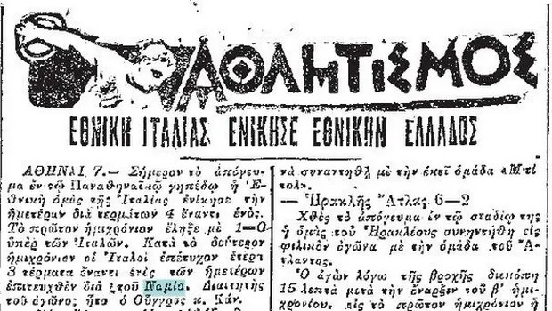 Η Β' Ιταλίας επικρατεί 4-1 της Ελλάδας, σε φιλικό παιγνίδι που διεξάγεται στο γήπεδο της Λεωφόρου Αλεξάνδρας. Η ΕΠΟ το θεωρεί ως τον πρώτο επίσημο αγώνα της Εθνικής.