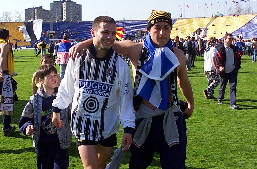Η ομάδα ποδοσφαίρου της ΑΕΚ δίνει φιλικό αγώνα με την Παρτιζάν στο Βελιγράδι, φορώντας φανέλες με ζωγραφισμένους στόχους, σε ένδειξη συμπαράστασης στον βομβαρδισμένο από το ΝΑΤΟ σερβικό λαό.
